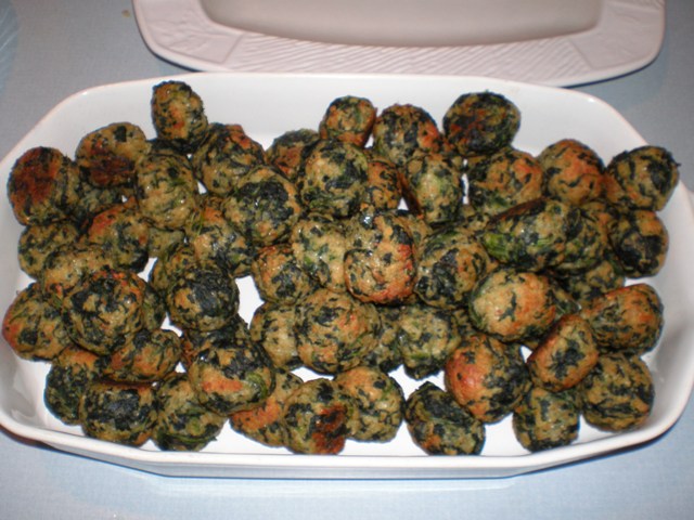 Spinach balls served with a spicy hot mustard sauce.
