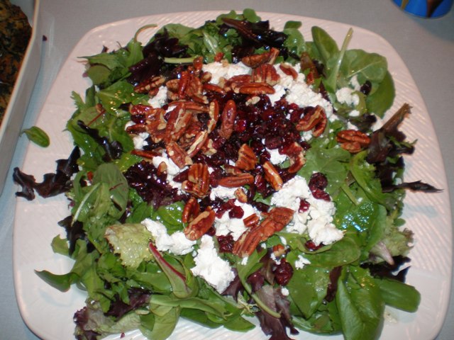 Spring green salad with cranberries, pecans and goat cheese.