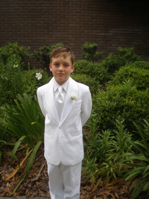 Evan made his first Holy Communion on Saturday. He did very well and Mass went smoothly. What a joyous event. His Granny and Grandma were here. The most significant part was that Evan’s godparents, his Aunt Rosie and Uncle Rob were here. Their presence when Evan fully joins the celebration of the mass is huge. One day it will matter that his godparents came to his sacaments and renewed their baptismal promises. I love their committment and am grateful for their steadfast love of my baby Evie.