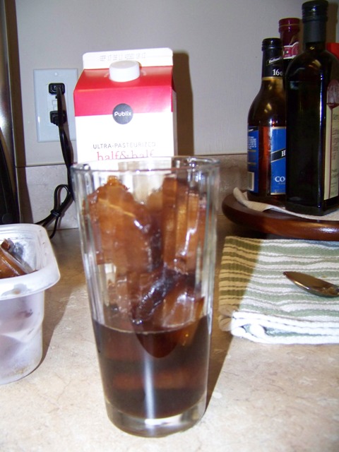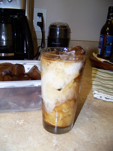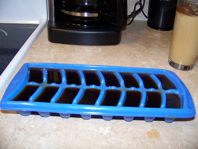 I am learning to make less coffee. I haven’t mastered it yet. But, I hate throwing away perfectly good coffee. So, I hatch a plan. I can’t take all the credit. I got the idea for the coffee ice cubes from Martha Stewart. Back in the day, I would often pay $3 for a Coffee Cooler at Barnie’s at the mall. Now, I make this neat little refreshment. I make the coffee cubes with the mornings leftover coffee.