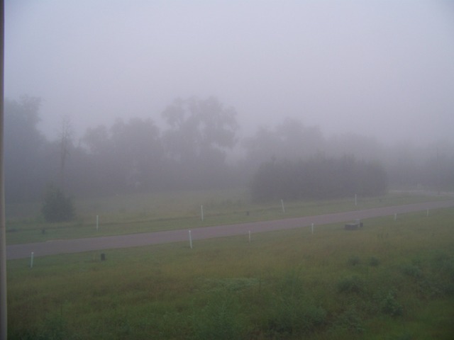 I woke this morning to this glorious fog. If you keep the blinds on your windows pulled, it may be easy to miss the hushed beauty. The development in which I now live is bordered by a golf course to the west and a stand of pine to the north.