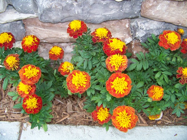 I took the opportunity, in the grey silence to plant the flat of marigolds I bought yesterday to make my front entryway more welcoming.