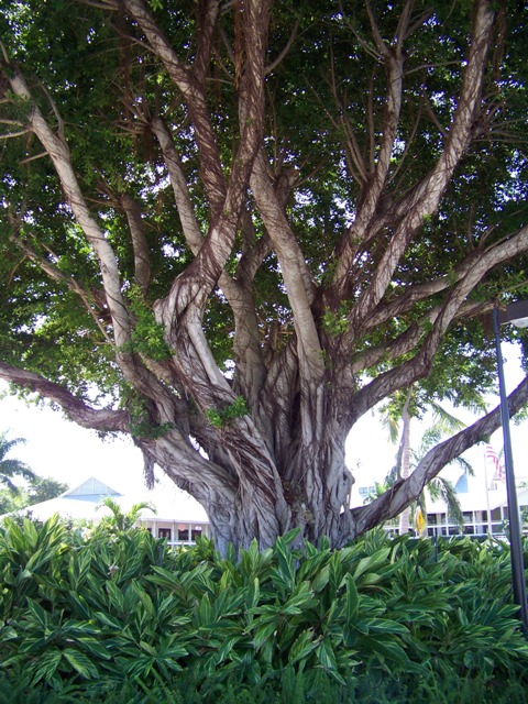 Ficus trees are the classic house plant. You can buy a plastic or silk imitation to sit in the corner of your living room. Real ficus trees are water seekers and the can grow to enormous sizes. The resort I am staying at has some very large ficus trees. They are not as larger as those along Old Cutler Road in Miami, but they are close rivals.