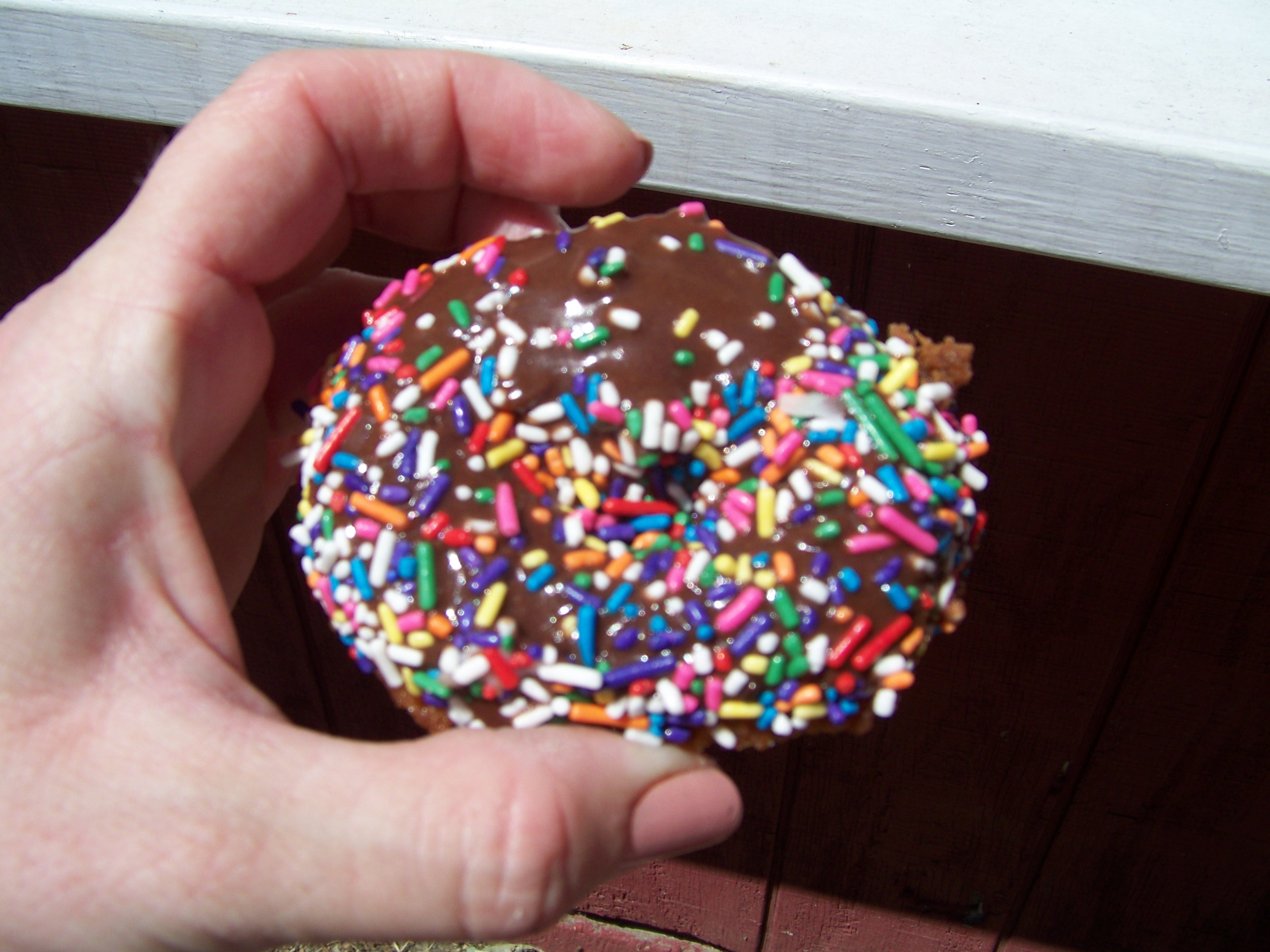 Plus, the Harvest Time Orchard makes fresh, hot donuts. They were to die for. Hot cake donuts with chocolate frosting (also hot) and sprinkles or shredded coconut. Heavenly.