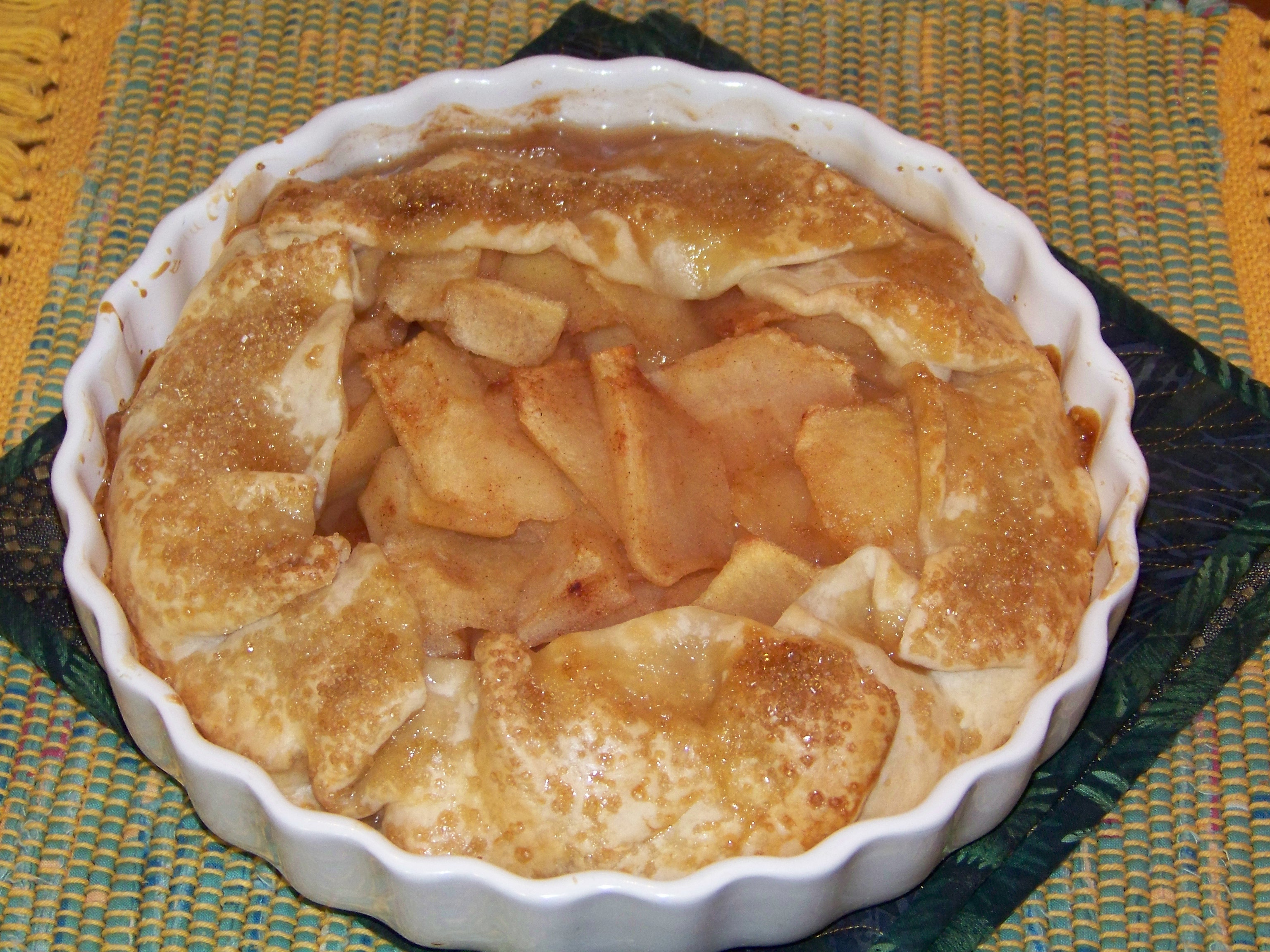 The honey crisp apples have arrived. Granted, a truly fresh apple straight off a tree or a roadside stand next to an orchard would be the best, but the giganto honey crisp apples that have arrived at The Fresh Market are phenomenal. I love this apple. I am usually a Gala, Fuji or Pink Lady fan, but the honeys are seasonal. I had four on the counter I bought last Wednesday and they had started to look dinged and faintly bruised. I was sure they would be mealy and dry. Wrong. I peeled away the skin and went a little deeper when I encountered a bruised area. And after tossing the slivers with cinnamon and a small amount of sugar, they got heaped into a Pillsbury pie crust for an impromptu apple galette. This counts are breakfast, right?