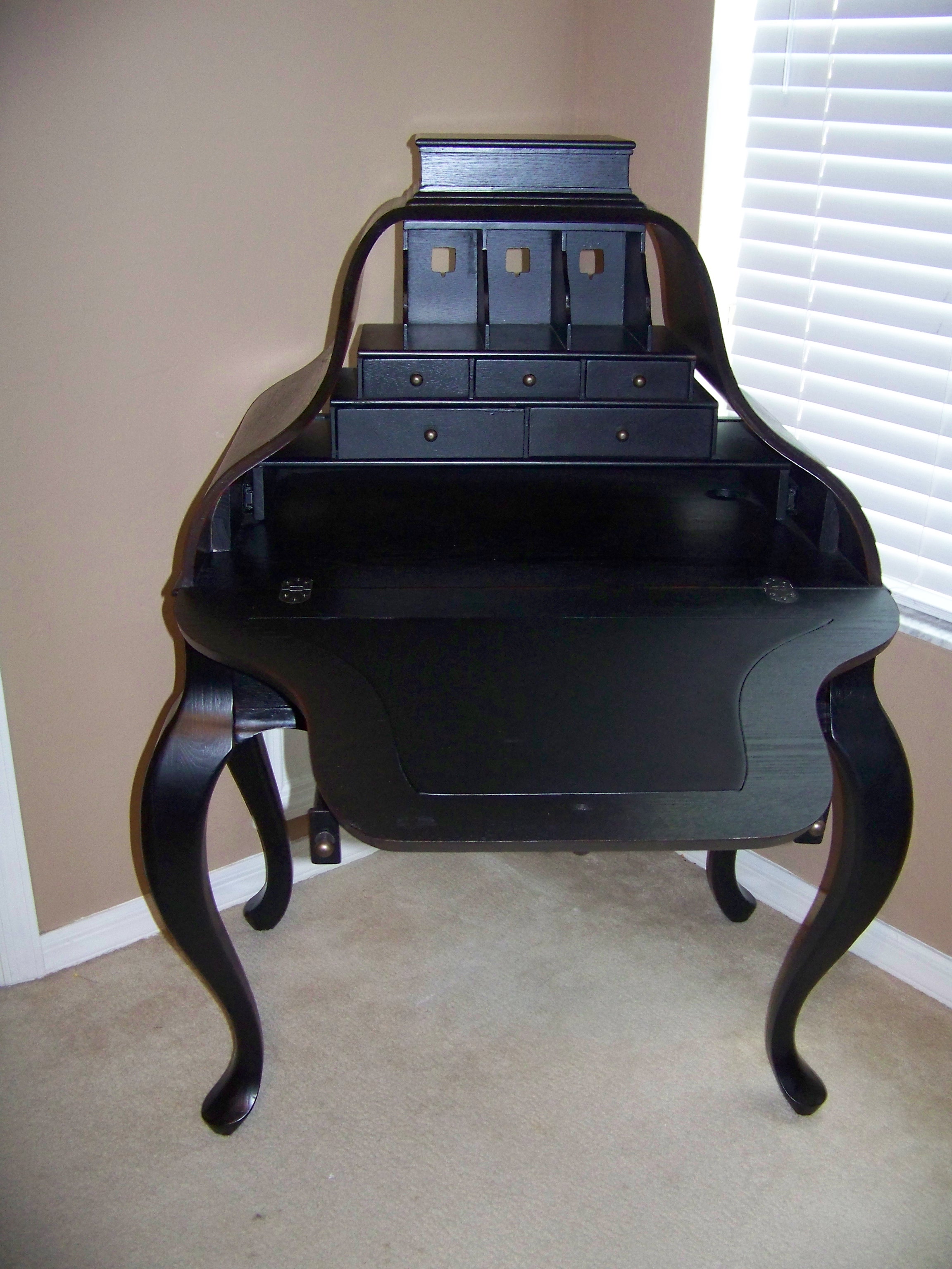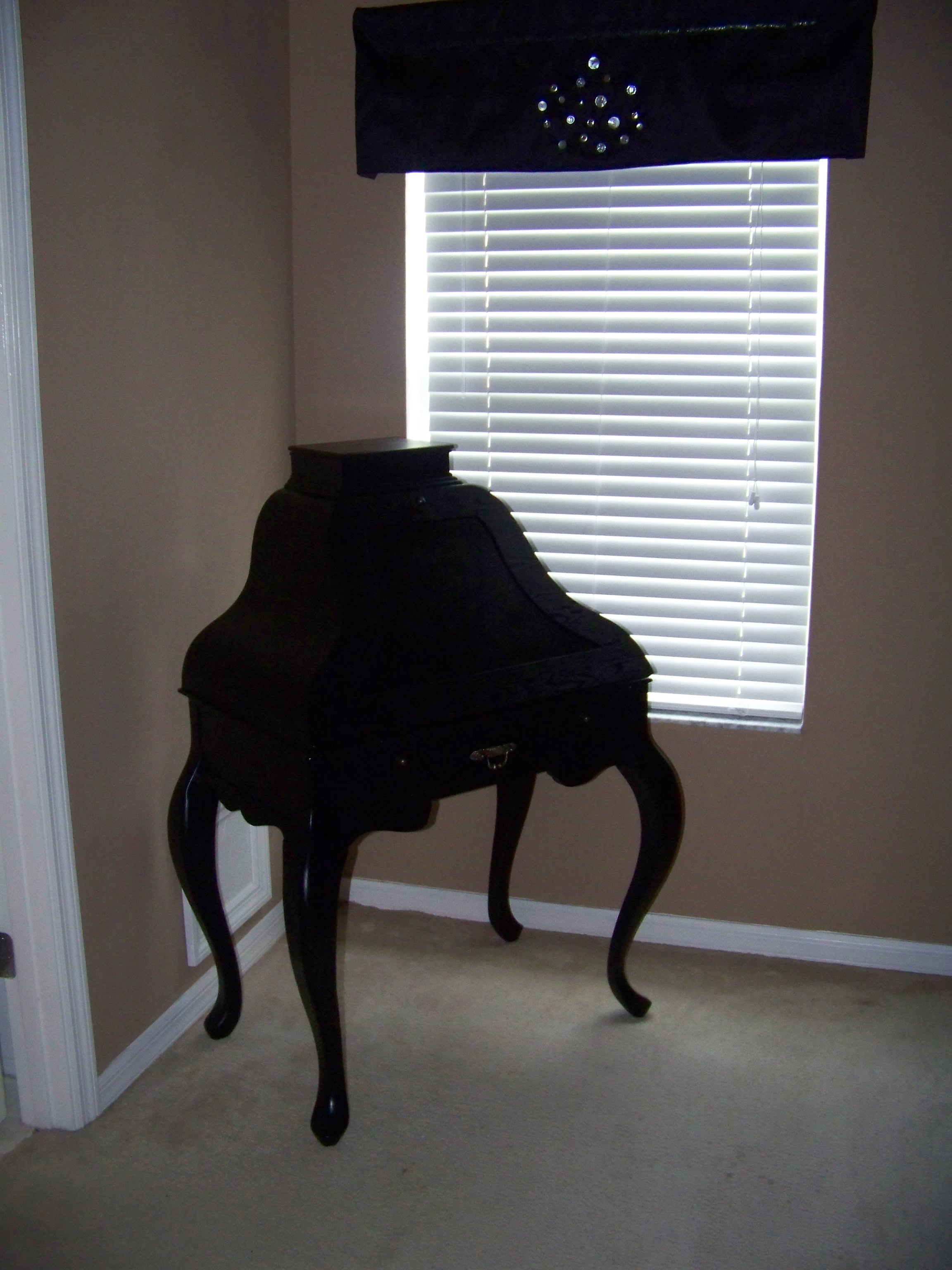 Occasionally, you find a rare treasure. You stumble upon something unexpectedly and it is so pleasing and so delightful, you must have it. In a little shop called eclectic I found this desk. It was stunningly inexpensive and so unique and uncommon; I had to have it. I had no clue as to how I might get the desk home to Florida but I was determined. I would solve that problem later. The legs could be removed and the thing could be shipped. Instead, I got a surprising door-to-door delivery. It is all providence. I had considered going to Charleston but was warned away because of Hurricane Earl. I had considered going south to Miami but then I learned I might have E for Saturday while his brother went to the first Gator game with their father. Fortunately, a third ticket was obtained and E got to go to the game, too. That pleased Evan very much. I had canceled my trip south so as to hang with Evan and now had a wide open four day weekend. I canned mustard. I finished the top of my quilt. I made valences for my bedroom windows. And then, late yesterday afternoon…..I get a desk delivery. And it is a beautiful addition to my bedroom.