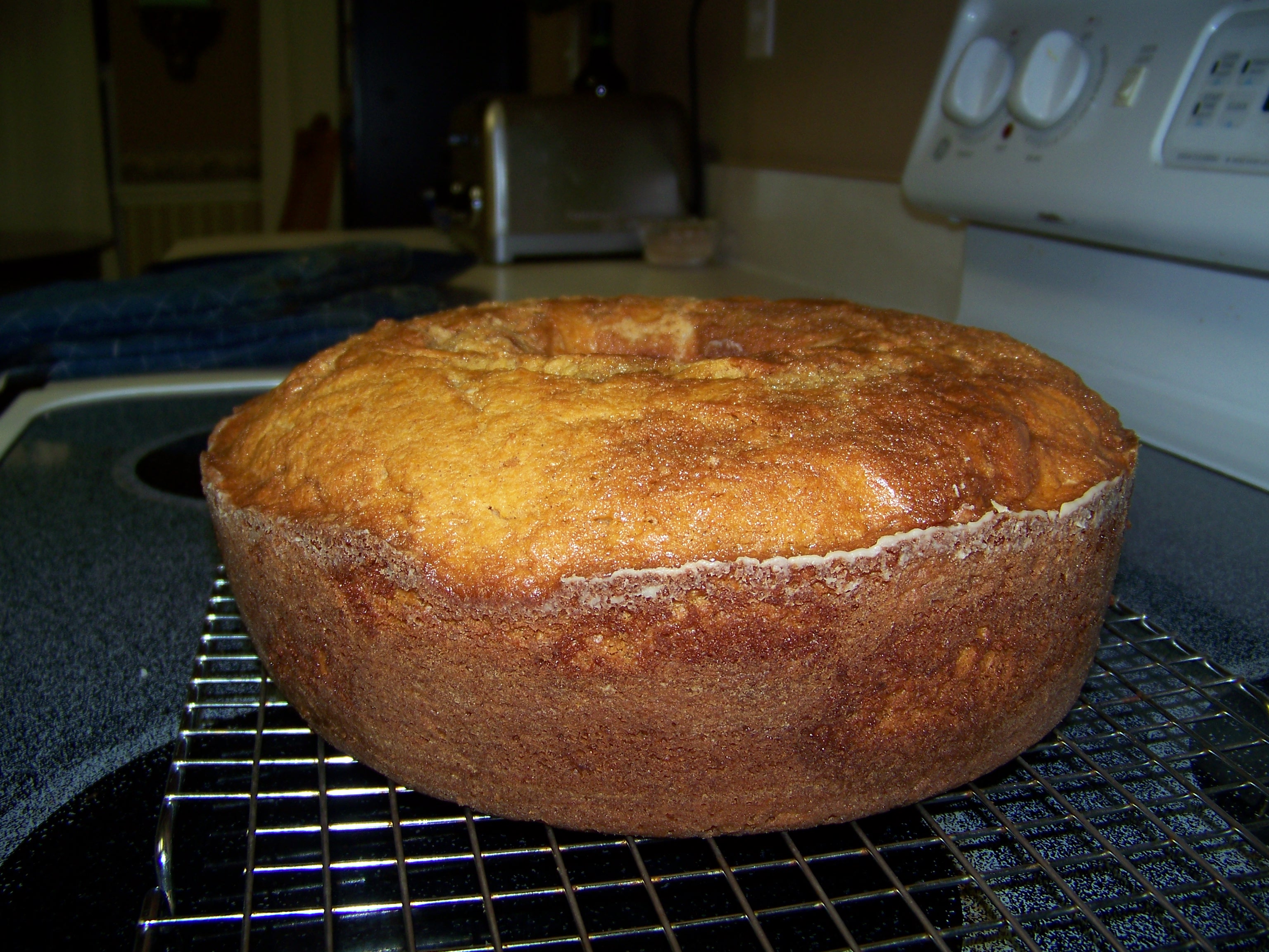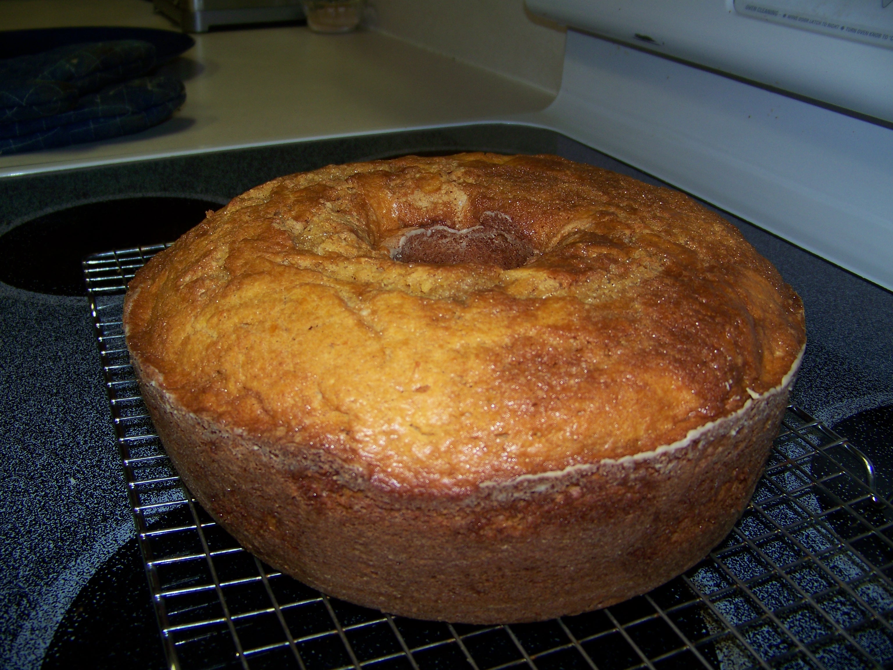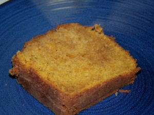 As a consequence of insomnia, I bake. While a mountain o’ laundry divvied up in laundry baskets in the living room awaits folding, I elect to make a pound cake from scratch… and a new-never-before-attempted pound cake. Check it out…..I wish you could smell its heavenliness! Cinnamon, nutmeg, ginger, vanilla and sweet potatoes. Plus real butter, sugar and eggs.