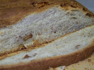 The walnut bread’s biscotti shape was a disappointment but a consequence of me letting it over-rise. When I put it in the oven, it collapsed. It was still tasty and I will make it again but add more walnuts and maybe some dried fruit.