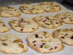 These cookies have been one my list to make for two years. Gourmet printed this recipe as a Christmas cookie and I think they are so pretty. Finding roasted but unsalted pistachios is impossible. I rinsed off all the salt and dried them before use.