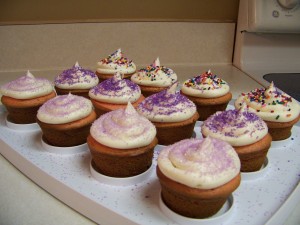 These were fun to make: strawberry cupcakes. I go the recipe from Lick the Bowl Good. It got me to thinking how many varieties of cupcakes can be made with Jell-O gelatin. I am fixated on orange. A white cake with orange Jell-O with a tangy citrus drizzle on the top.