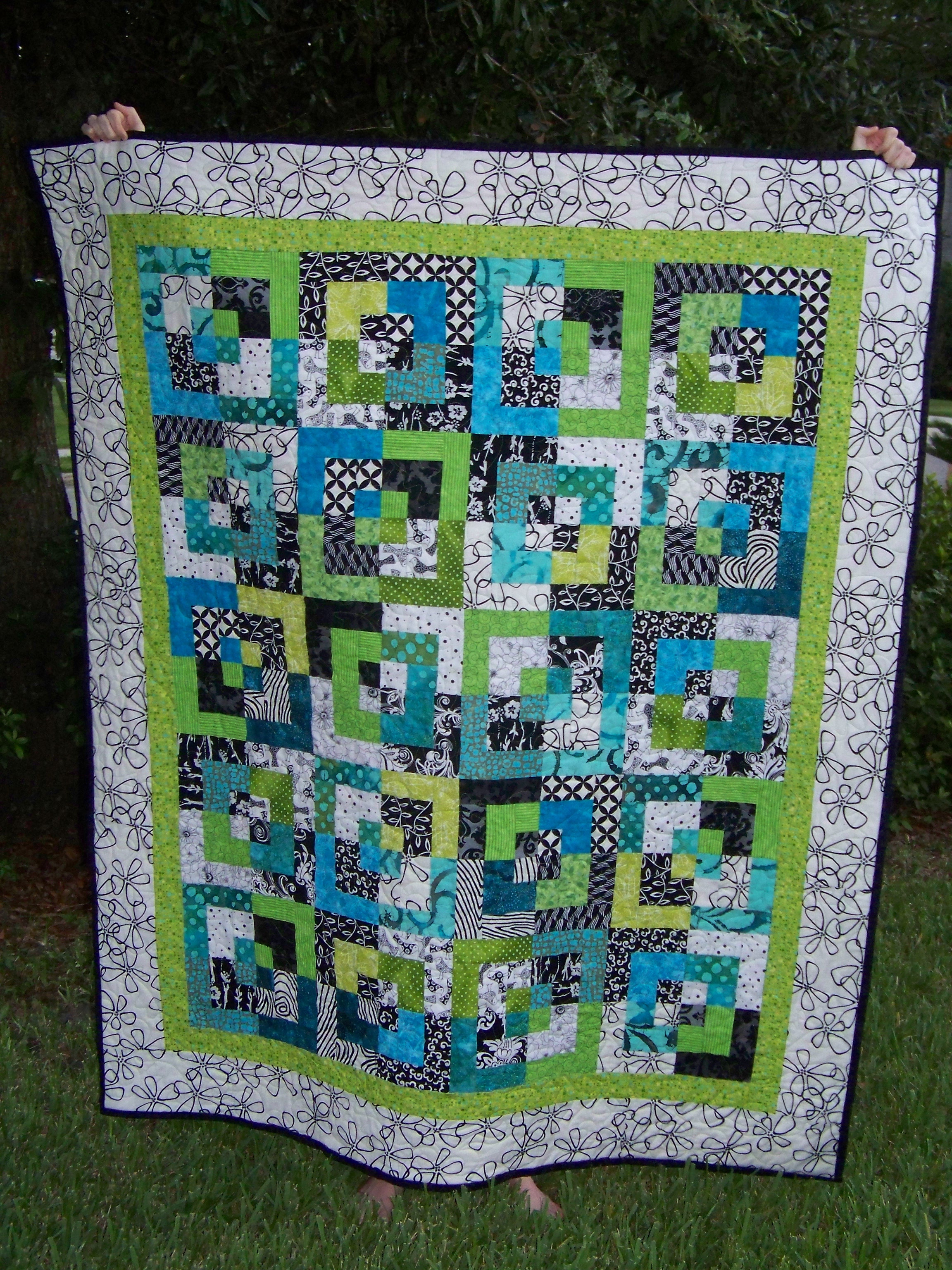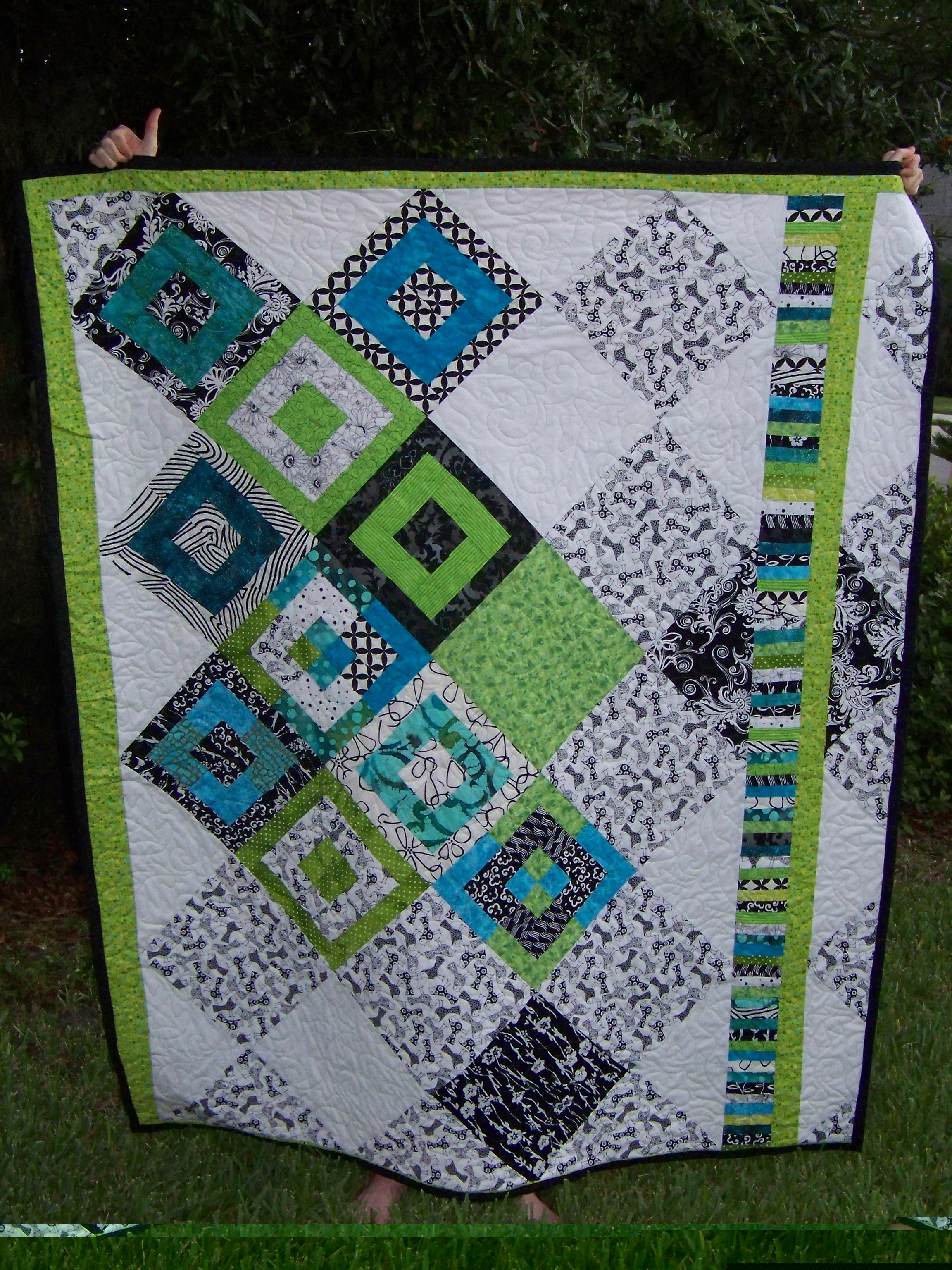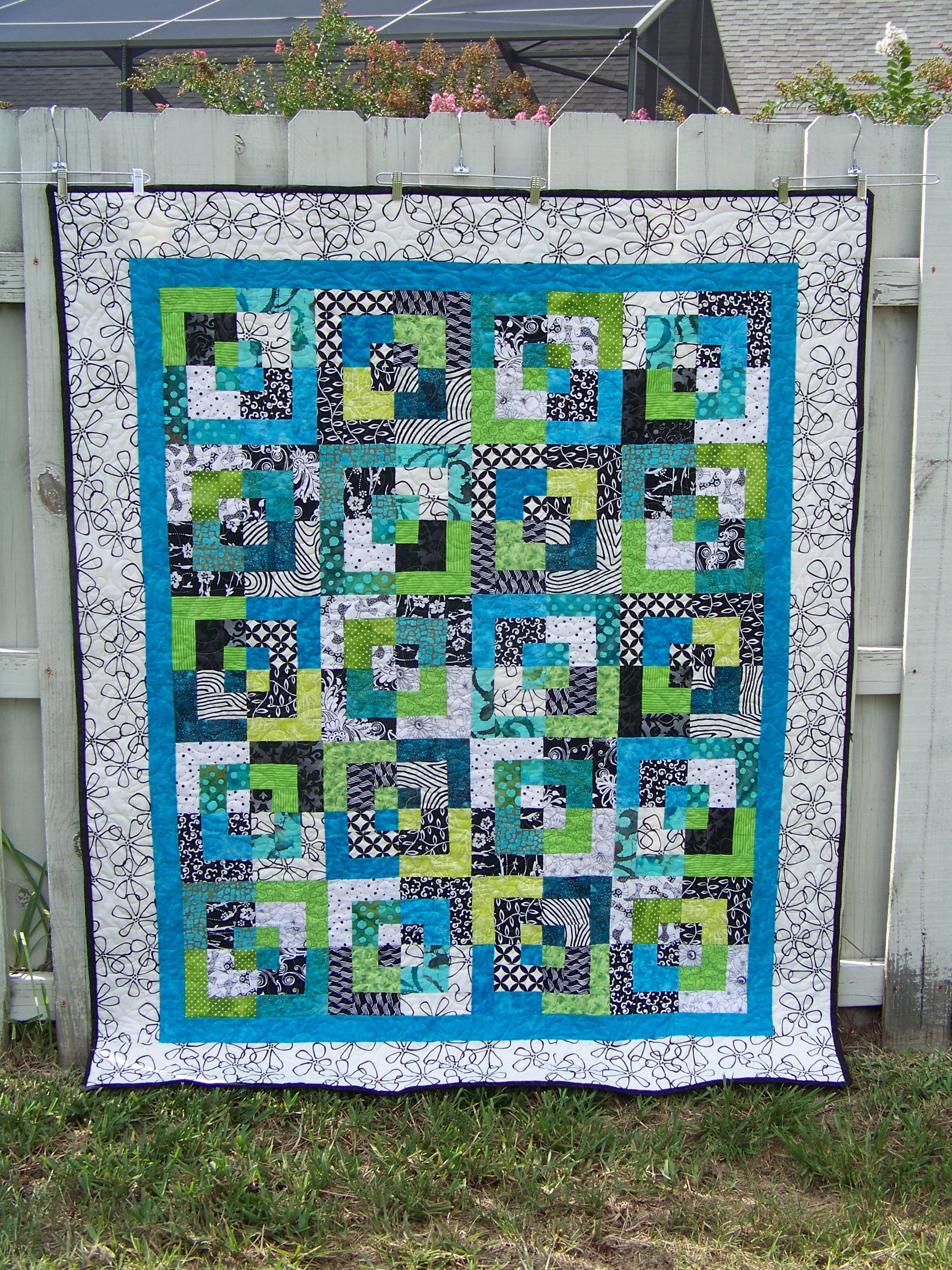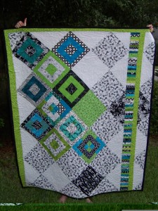 I finished the last bit of hand stitching on the binding for the turquoise quilt. Now they are both done. Essentially, I made four quilts. I bought so much extra fabric and while making the Bento boxes, I kinda went overboard. So, I had many extra blocks and many more strips and 2x2s. So, I made backs to the quilts that were free hand designs. I let Miss Tracey and Buttons&Bows handle the long arm quilting and I have spent the last two weekends hand stitching the binding. Finito.