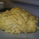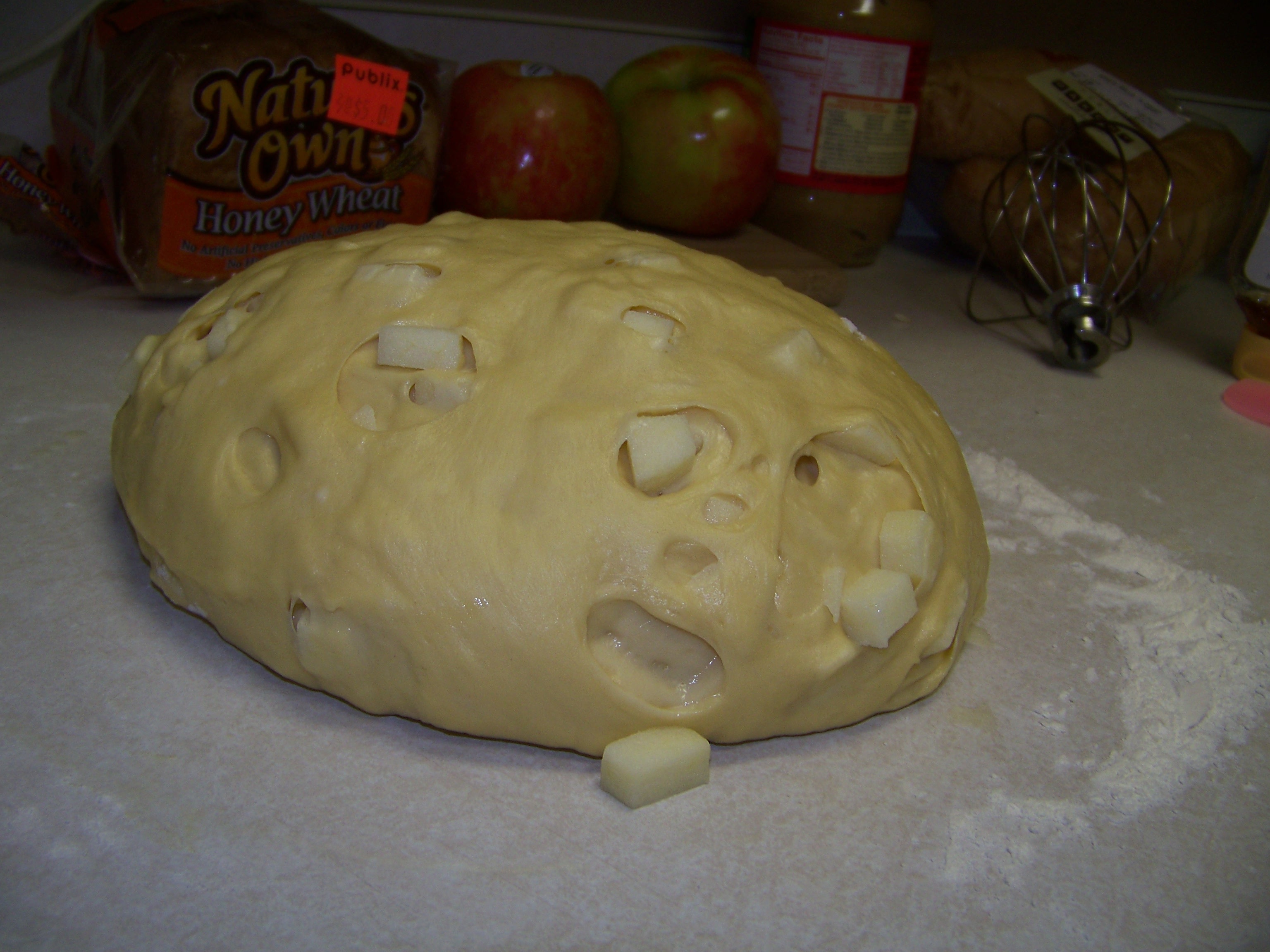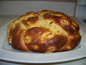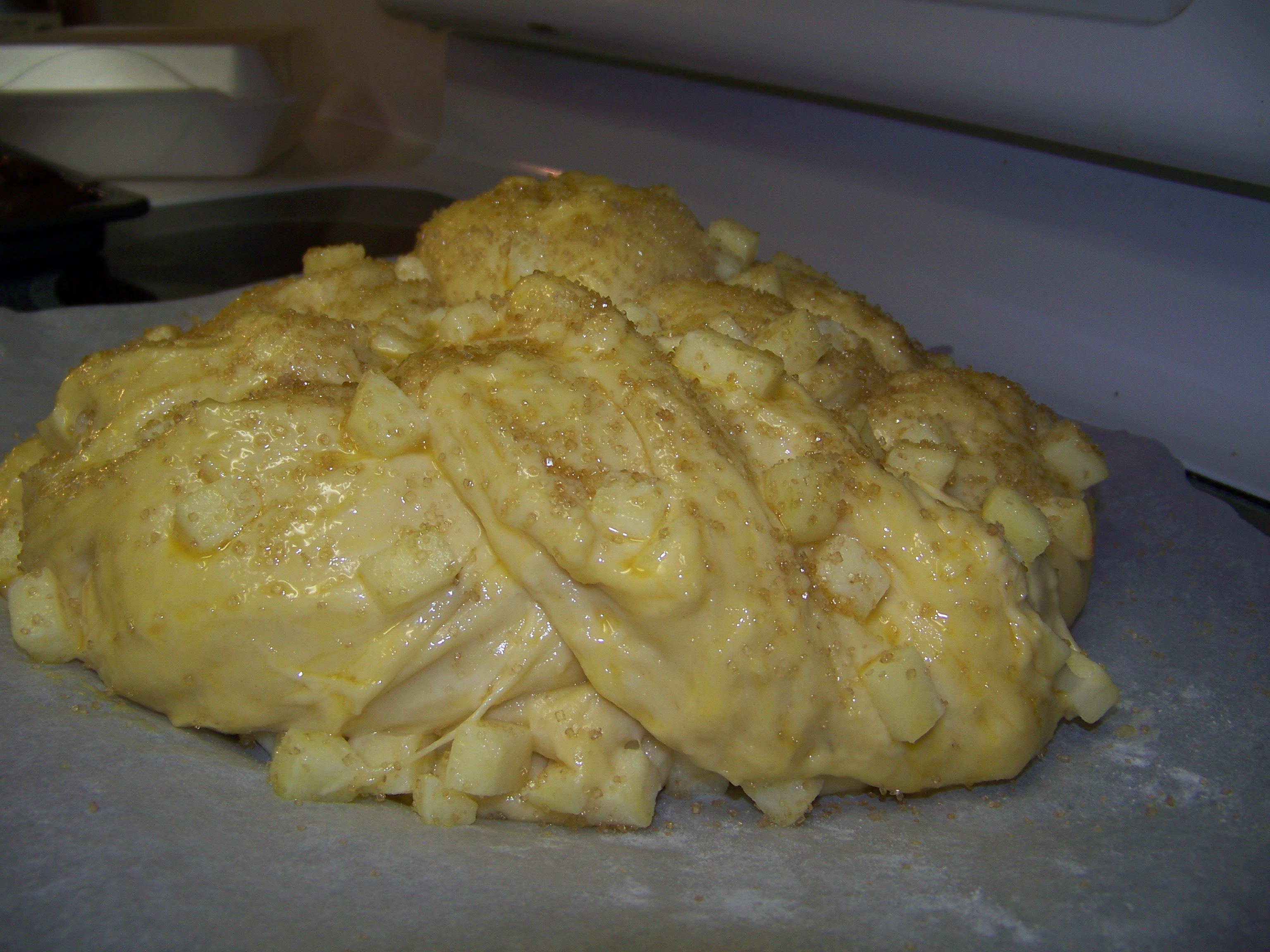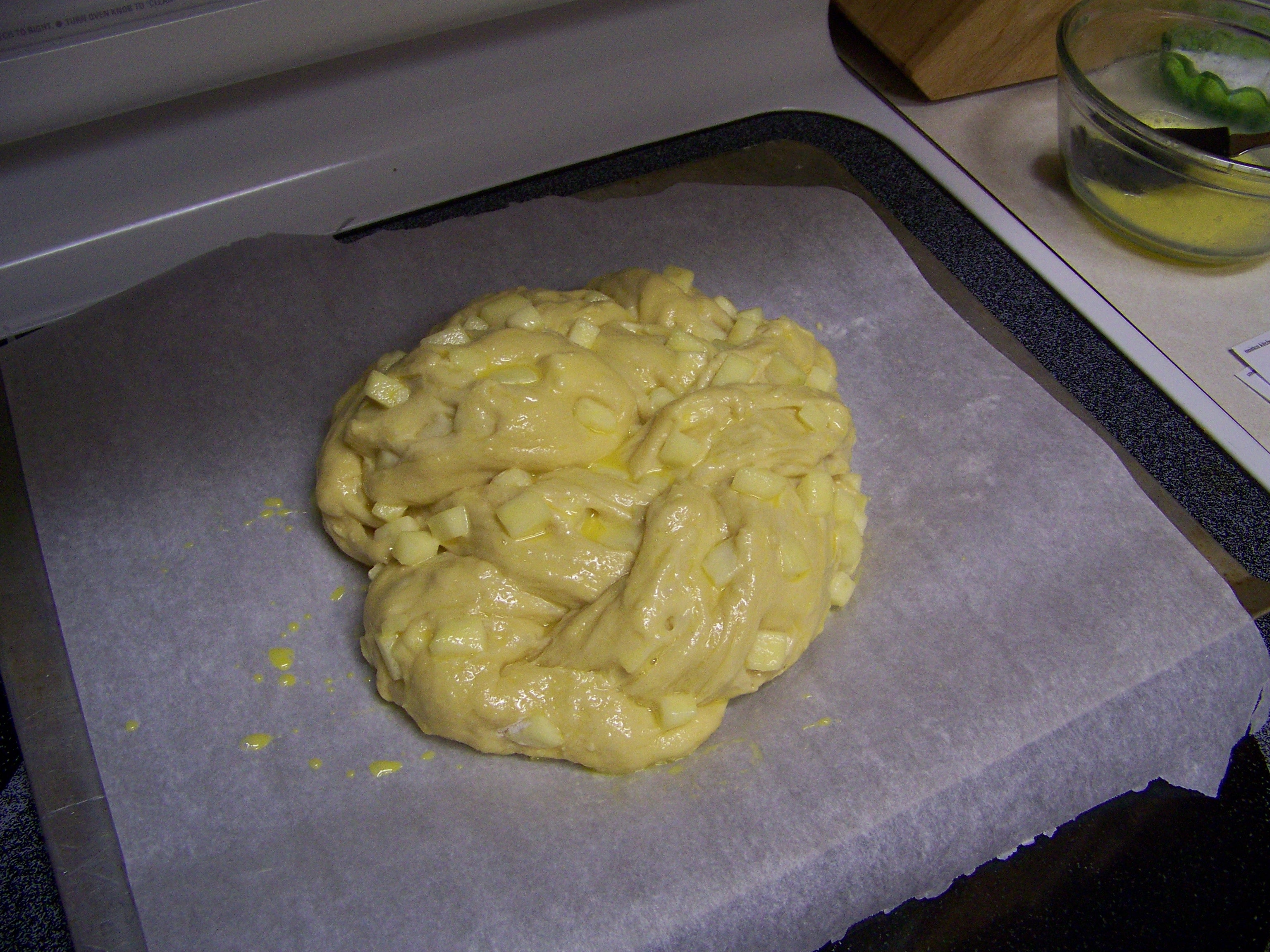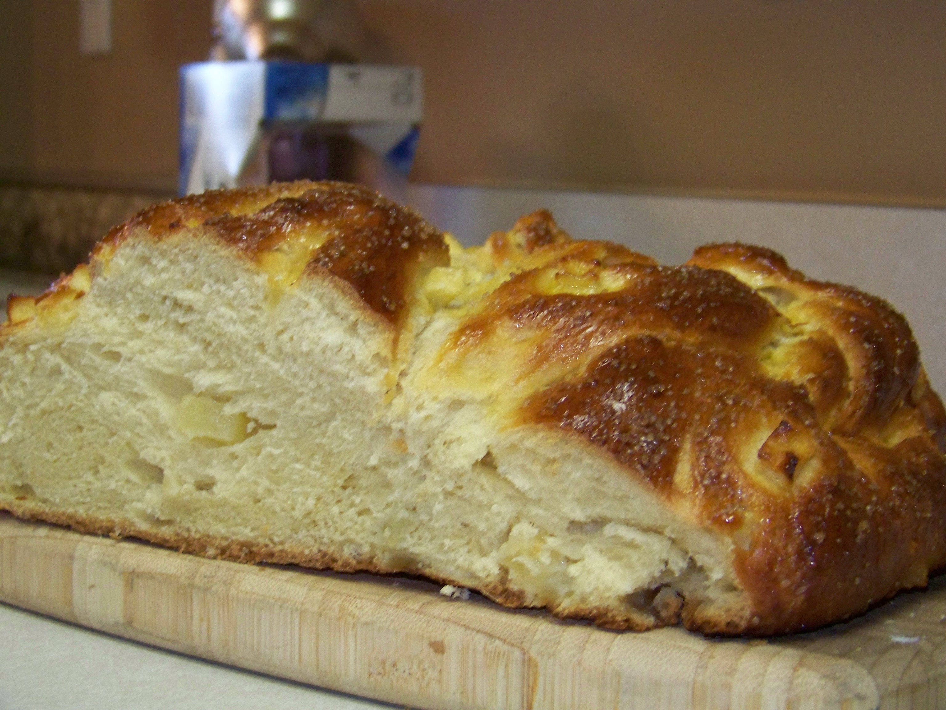 I woke to a cloudy day drizzling with rain. The cloud cover is dense and it is the kind of fall Saturday that warrants snuggling. I stayed snuggled down in bed for as long as I could but my two cats will have none of the rolling over and going back to sleep. I took my oldest son to his cross country meet and after letting him drive to the community college, I wasn’t going back to bed. His 15-almost-16 year old driving doesn’t make me nervous. I am eager for him to be confident and capable of driving. But I must be fully AWAKE to ride shotgun for him to drive. So after returning home, I set about to organize my sewing for the day and to make homemade bread. I made Smittenkitchen’s Apple Honey Challah, but I used melted butter instead of oil and the outcome is a dense brioche bread with sweet bites of apple speckled throughout. I couldn’t resists it and a warm slice smeared with butter was heavenly. Now I will snuggle down on the sofa and do my hand sewing. Or, maybe I will take a nap. After I have another slice of bread.