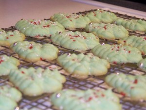 The first batch of Christmas cookies were made today. Spritz Christmas trees are the top fave in this household. This is a cookie I never make at any other time of the year.