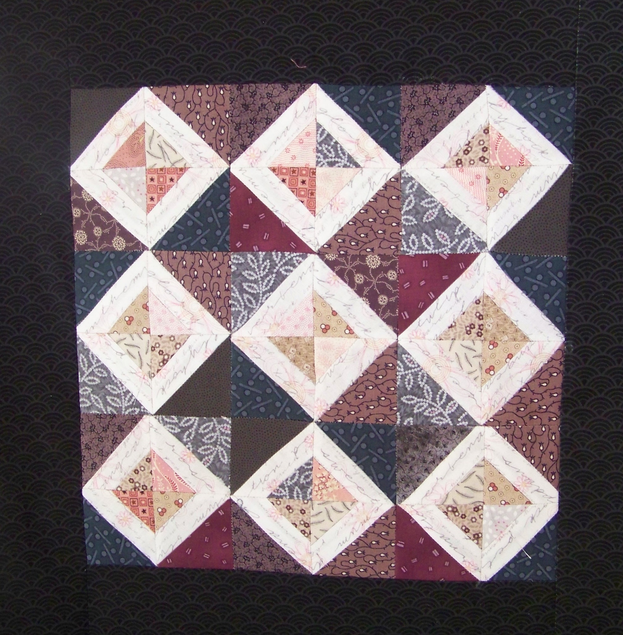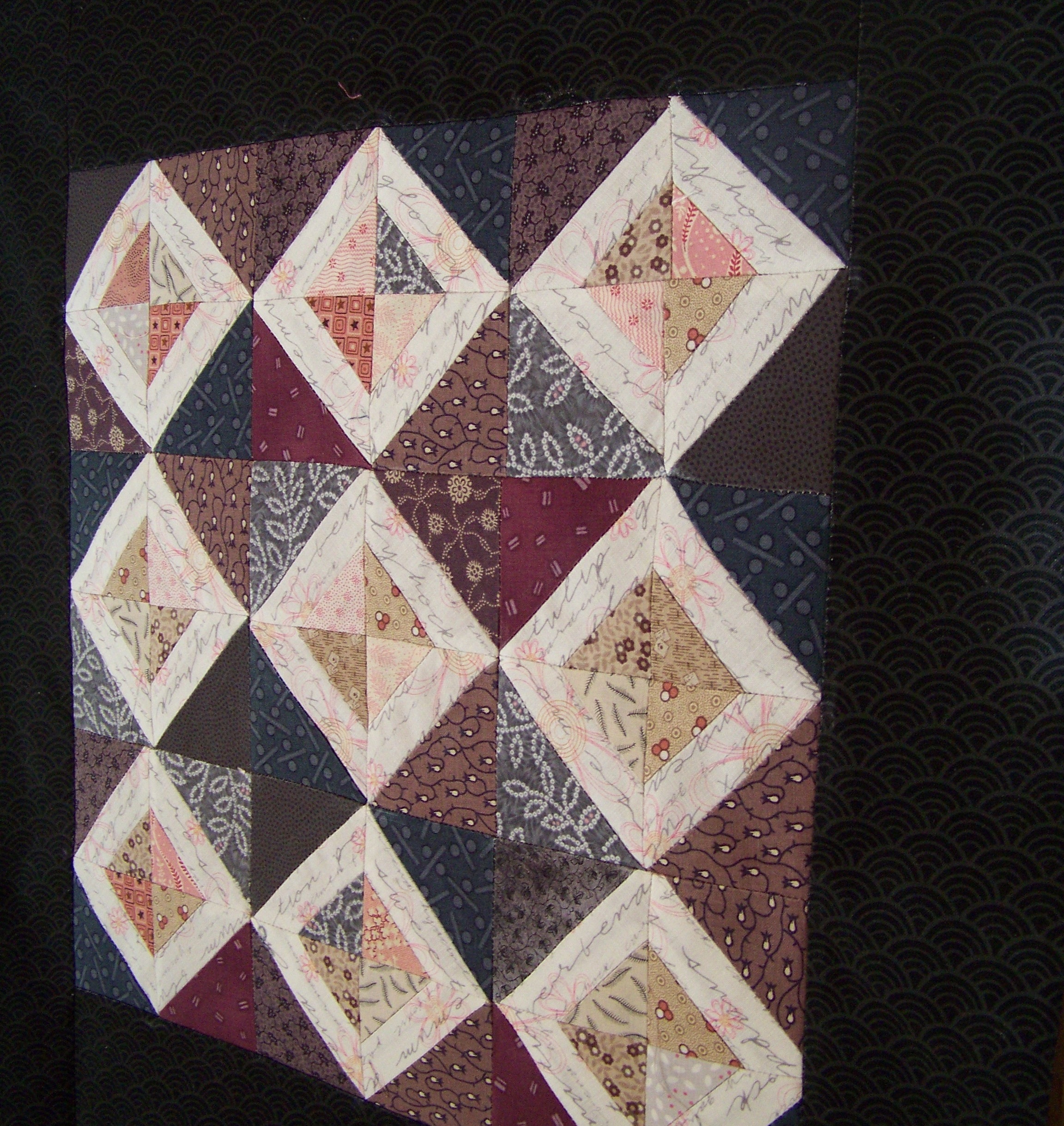 I must buy the walking foot for the Singer Curvy as my old walking foot does not match this machine. Then I will quilt the pillow top and assemble the pillow. I am not sure I enjoyed this process of paper piecing, but now I know how to do it and I understand the value as it allows you to make things smaller. It also allowed my to really highlight the white fabric in each square, which is a swatch I love but had only a small remnant remaining from the other two quilts I made.
