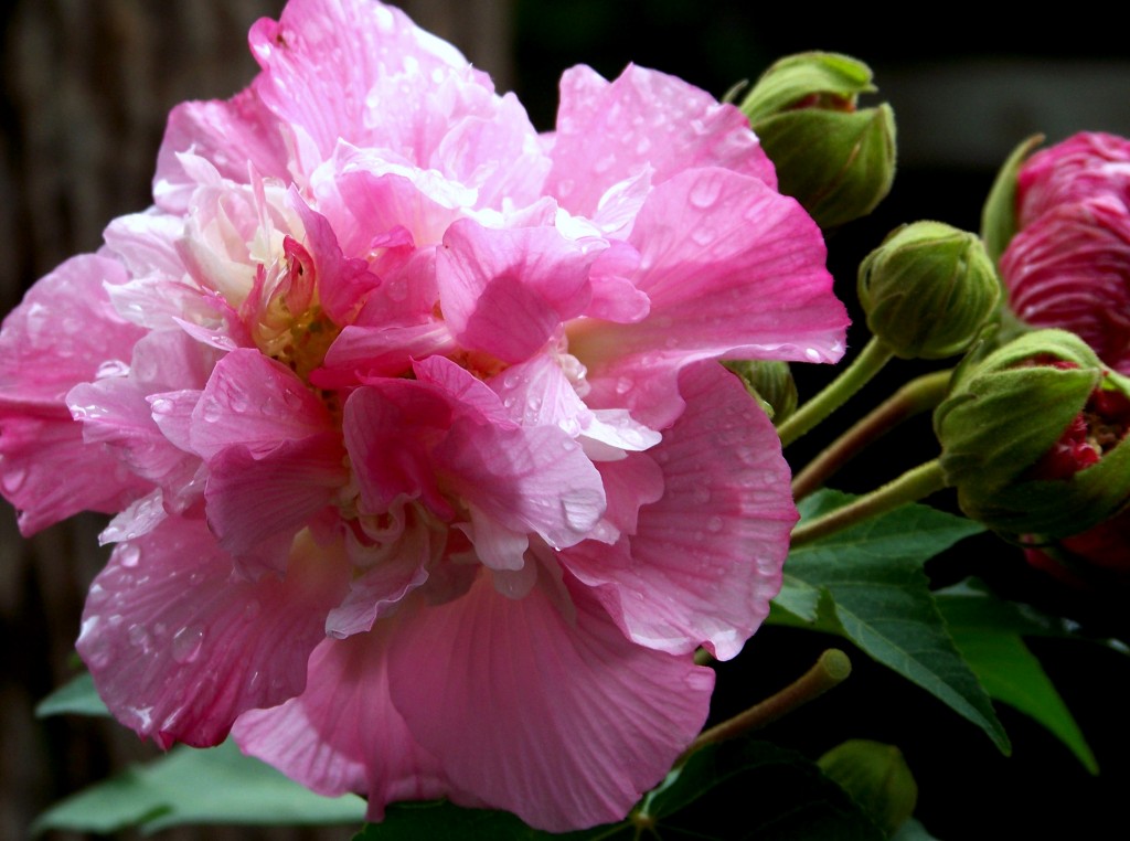 This is a Confederate rose (Hibiscus mutabilis). It is a woody shrub that can grow over 10 feet tall with leggy stalks. It is cold hardy in my Zone 8 but it drops all it’s leaves in winter and sprouts anew in spring. It has repeating blooms and when it blooms in the morning of it’s first day, the blooms are ivory but as the day progresses, the flower slowly turns pink and then deep fuchsia. It has no fragrance. I have seen it swarmed with colonies of aphids but is a resilient bush.