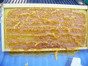 It was an absolutely gorgeous day today, a true Florida fall day. It stayed in the high 70’s and as the sun has gone down, the temperature has dropped below 70F quickly. There wasn’t a cloud in the sky all day. The birds found my bird feeders and also the bird bath. I managed to get some house chores and small tasks completed. I scrubbed my patio furniture and their cushions with Oxy-Clean. The carpenter came and installed the doors for my custom cabinetry beside my fireplace. It looks fabulous! Then I got help pulling one of the first full frame from my bee hive.