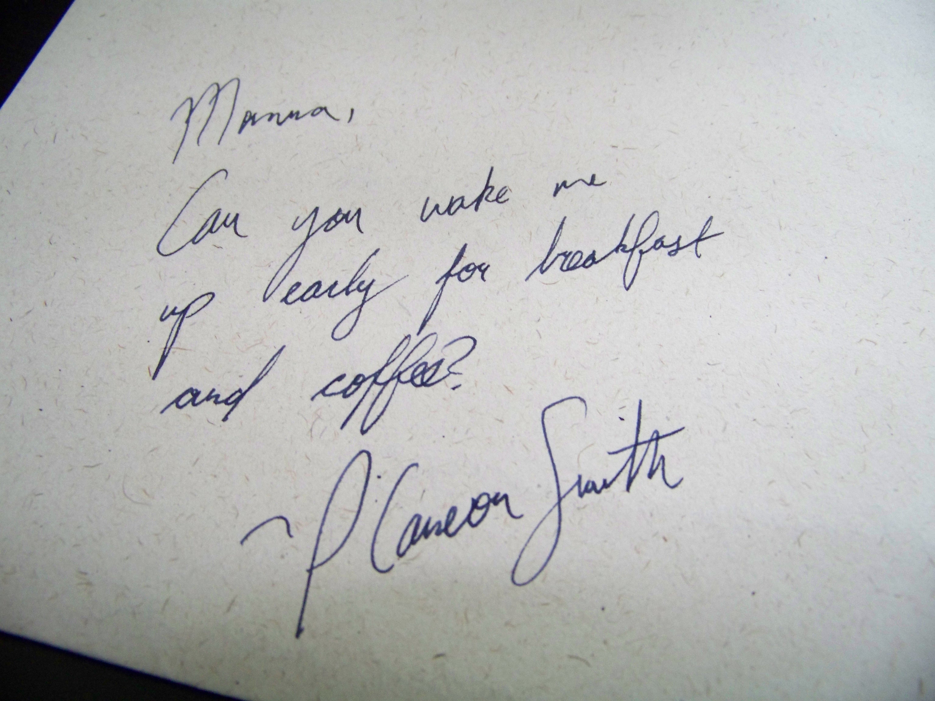 I find this note left in front of the coffee maker. Waking to such a sweet note thoroughly makes my day and re-orders whatever might be misaligned in my life. While I get lonely and occasionally feel marginalized – for it is not the natural order of things for my children to serve as my companions or friends – it lightens my heart when they do things such as these. I left shortly after this discovery to go to the farmers’ market to get eggs and fresh things to cook with. About an hour later my cell phone rang and my younger son’s sleep voice says, “Where are you Momma?” When I came back from the market, he tells me that he went into my bedroom to crawl into bed and snuggle only to discover I was gone. Again, my heart swelled to twice its normal size.