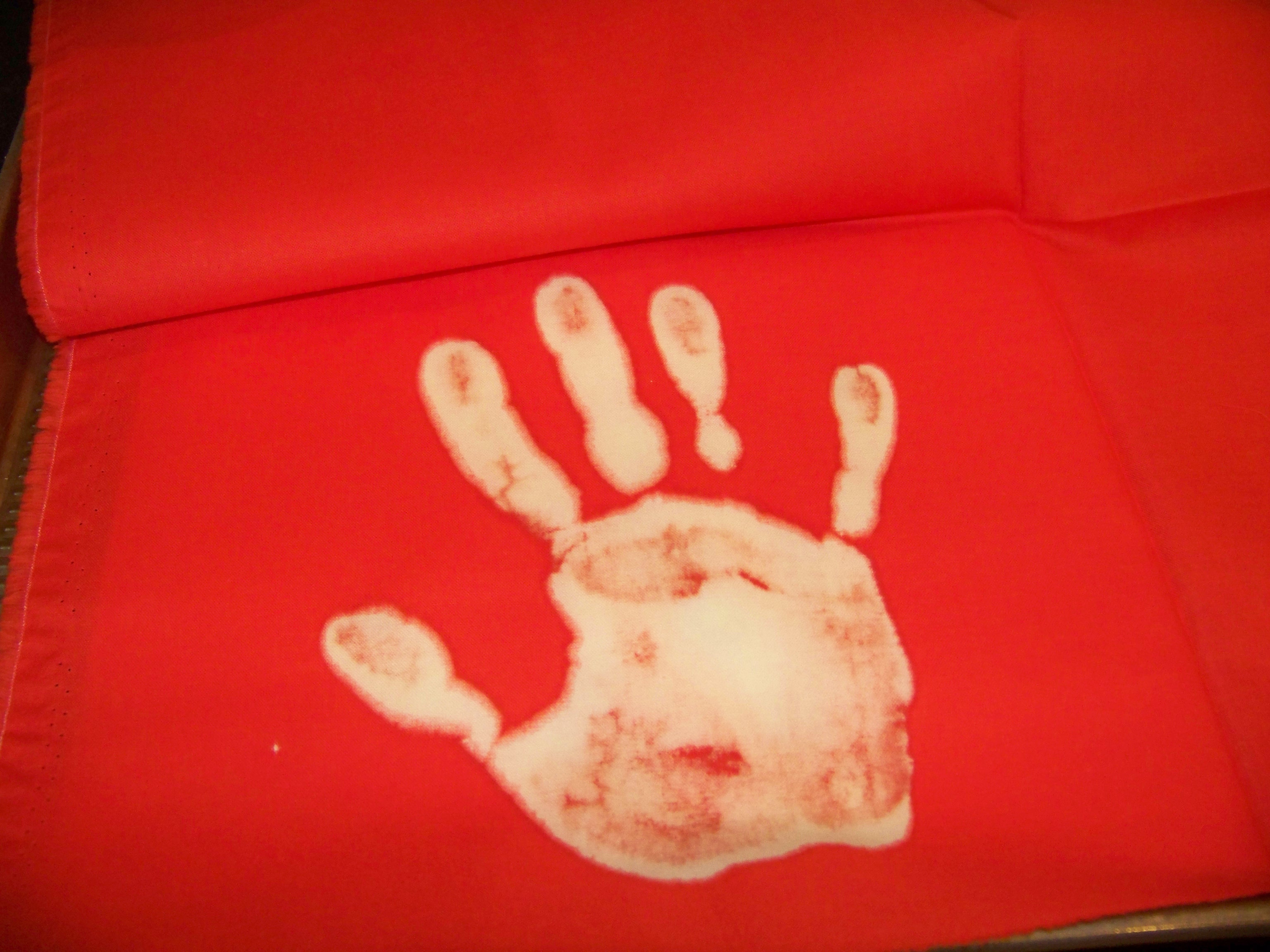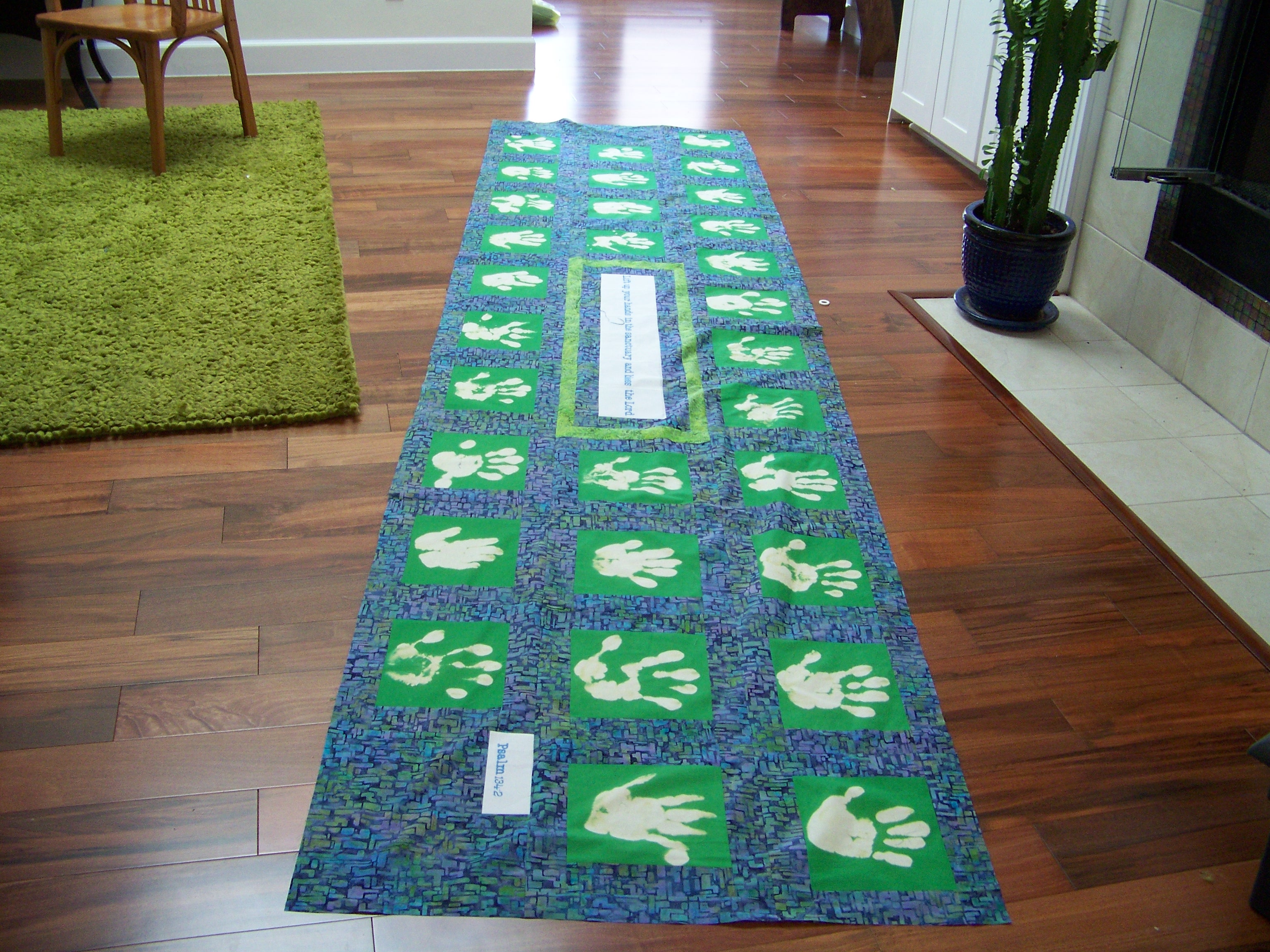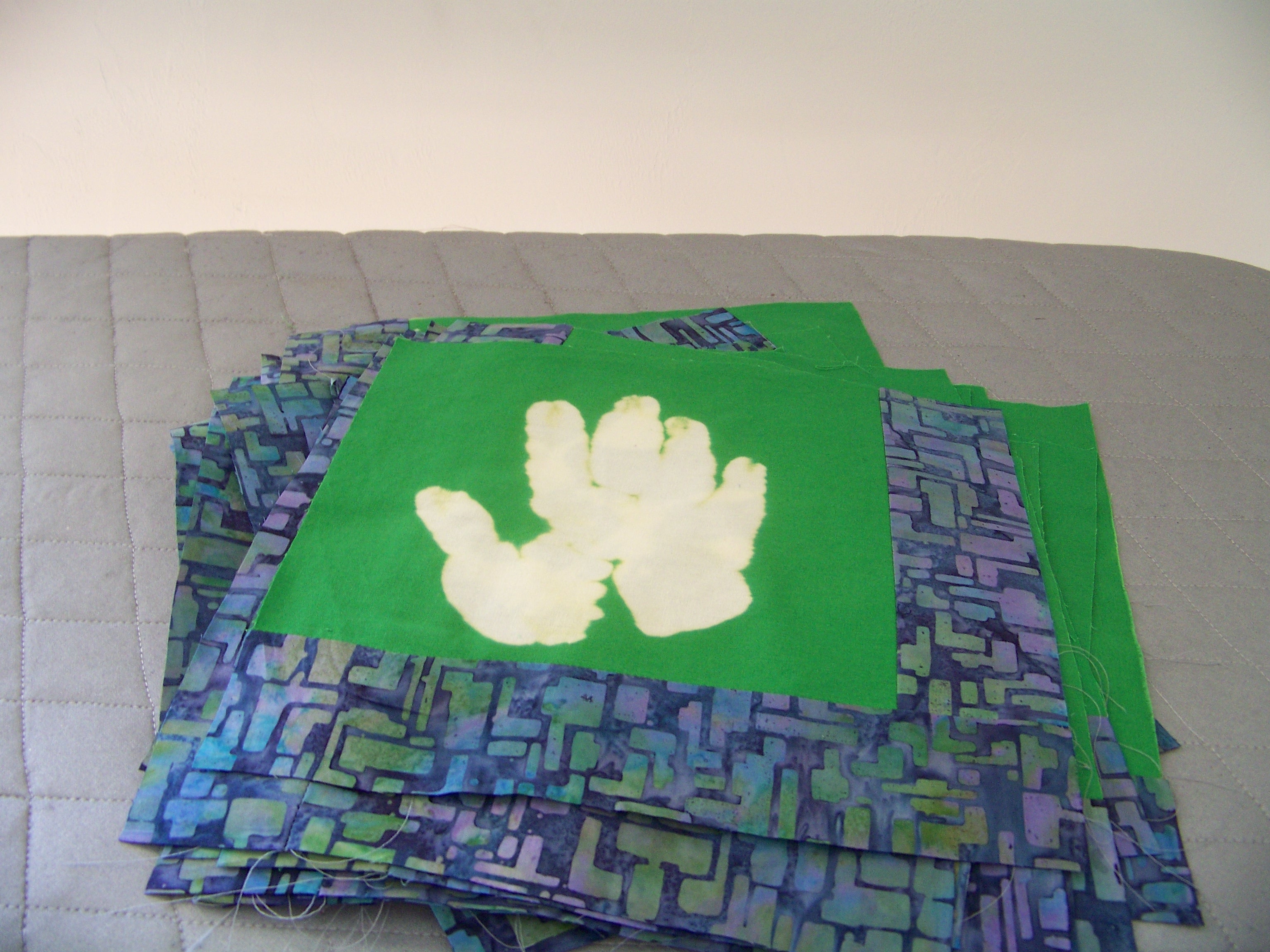 And once that idea was confirmed, I bought Kelly green fabric and visited school to get the kids to remake their hand prints (along with their two class teachers).