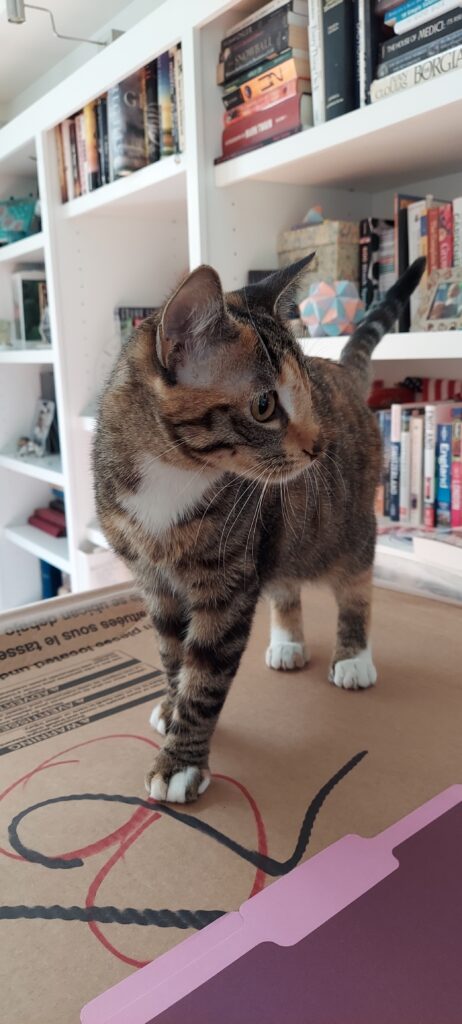 My oldest son asked me to cat sit. He adopted a six-toed Hemingway Tabico from the shelter in early spring. He had an optimistic attitude that he could socialize the cat like others socialize a dog, nevermind that he lives alone and is a hard introvert. But, he bought a luxury cat carrier that could fit in the under-seat storage area on an airplane and grain-free, no cruelty pet foods, snacks and toys. He named her Fiadh (pronounced FEE-ah).
